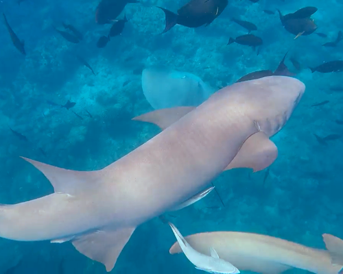L'altra escursione che abbiamo fatto è stata nuotare con squali nutrice, esperienza bellissima che devo essere sincera, avevo sottovalutato. Essere circondati da questi animali silenziosi che si avvicinano tanto ma non ti toccano mai è stato emozionante. Non è assolutamente pericoloso ma bisogna stare attenti e non toccarli perché possono mordere. La seconda parte dell'escursione prevedeva la sosta alla sand bank. I colori del mare introno a questa lingua di sabbia sono indescrivibili, di uno smeraldo intenso. La fermata dura una trentina di minuti, tempo sufficiente per qualche foto . Qui abbiamo visto anche una tartaruga in mare.